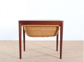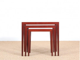 Haslev Møbelsnedkeri also produced other Danish designers including Erik Riisager Hansen, and Ole Wanscher who signed a series of coffe tables and stacking tables with very geometrical lines and a typical "envelope fold" assembly, which can be found throughout the production of the 1960s.