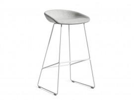 About A Stoll AAS 38 Bar Stool 64 cm or 75 cm . The bar stool About A Stool AAS 38 has the same capacity for transformation as the other members in the series, ranging from a minimalistic plastic stool to a more full-bodied upholstered version. The curved backrest is balanced on an elegant rounded frame in metal, showcasing a more industrial design with a strong visual presence. Suitable for as using as a bar stool in bars and restaurants, as well as at home for informal meals. Available in two heights and in a wide range of metal finishes and colours.