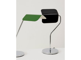 British designer John Tree revisited the iconic Banker's Light, blending traditional elements with his modern and colorful touch to create the Apex lighting collection. Each piece is distinguished by its elegantly folded steel lampshade, reminiscent of a roof, mounted on a delicate chrome base.