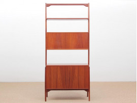 Mid-Century modern scandinavian bookshelves in teak by Erik Buch. Scandinavian teak bookcase with 1 box with 2 doors, 1 vitrine and 1 shelf. Free standing, without fixations in the wall. Can used as a separator. The elements are adjusabled.