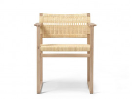 BM62 Armchair Cane Wicker - Model 3262 by Borge Mogensen for Fredericia. New edition. Børge Mogensen brings us back to nature with the choice of cane wicker or linen webbing coupled with a solid wood frame. In a slender design involving only what’s crucial to the construction. By carefully calibrating the angle of the back rest, it’s a simple yet striking dining chair that’s comfortable before, during and after dinner.