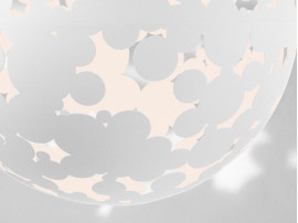 Technically remarkable, the Camouflage pendant lamp is characterized by the laser cuts of the globe which project an alternation of shadows and lighted areas reminiscent of military camouflage. These cutouts in aluminum give this pendant lamp a double function of lighting and refined decorative object. Diameter 50 cm or 80 cm. Finish