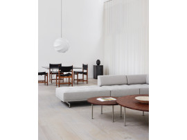 Designed in 1960, along with Ox Chair and Queen Chair, the Ox Table fits as a natural centrepiece. A classic Hans. J. Wegner piece of furniture in a simple, yet complex design with a self-supporting construction completed without any side rails resulting in a sleek and elegant profile. The table is available in two heights, and more tables can put together with overlapping table tops.
