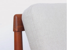 Danish modern 3 seats sofa in teak model PJ56/3 by Grete Jalk. Cushions newly reupholtered with Kvadrat Hallingdal grey fabric.