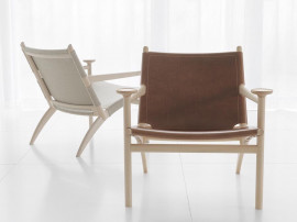 Easy chair with frame in solid whitepigmented waxoiled beech.