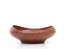 The FJ Bowl is the smallest of the sought-after teakwood bowl series that Finn Juhl designed in 1951. It features the characteristic blend of organic shapes and balance between wood, form and geometric measurements that made Juhl famous. By contrasting the undulating pattern of the teakwood with the rim, Juhl uses design to further reveal the natural properties of the material at hand: depending on what angle you look at it from, the bowl changes shape, creating new relationships at every turn while slowly growing on you.