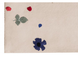 This rug is hand knotted with a woolen base and flowers in a silk blend. Some flowers also have a hair which improves the feeling of realism of the flower petals.
