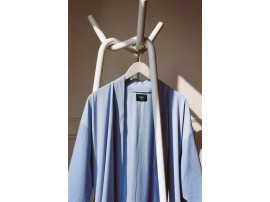 Crafted by Japanese designer Jin Kuramoto, Knit stands out as a minimalist and sculpturally distinctive coat rack. Composed of three interlinked steel pipes finished with a powder lacquer, they are ingeniously 'knitted' together, ensuring mutual support and structural integrity. Drawing inspiration from the tactile sensation of handling various materials and the innovative techniques of bending and intertwining ropes and metal rods, Knit was conceived as an addition to HAY's range of wardrobe solutions, boasting a flat-packed design for effortless assembly. Its high-gloss finish imparts a radiant sheen, making Knit a versatile piece suitable for enhancing the utility and aesthetic appeal of entrances, bedrooms, and other communal or private spaces.