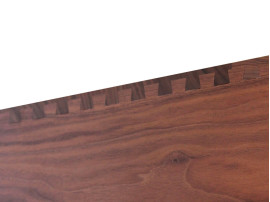 The cabinet and drawers are made of solid ash, oak or walnut, either oiled or covered with a water-resistant matte clear varnish. The interior of the drawers is made of solid ash wood. The joints are made with dovetail connections using environmentally friendly non-toxic glues. The varnishes are water-based and non-polluting, and the oil used is organic and vegetable-based. The base is made of satin-finished lacquered steel, available in black, white, or a range of twenty colors from the RAL palette (contact us). The legs can be finished with solid wood caps of the same species as the cabinet or with black plastic glides.