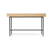 The desk is exclusively in solid wood, heart ash, oak or walnut, with an oiled finish or covered with a water-resistant matt clear varnish. The varnishes are water-based and non-pulling, the oil is vegetable and organic. The box is assembled in the traditional way, with miter cuts and the drawer fronts are assembled with dovetails. The opening of the drawers is done in "push-loose".