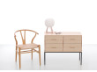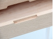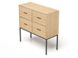 The cabinet and drawers are made of solid ash, oak or walnut, either oiled or covered with a water-resistant matte clear varnish. The interior of the drawers is made of solid ash wood. The joints are made with dovetail connections using environmentally friendly non-toxic glues. The varnishes are water-based and non-polluting, and the oil used is organic and vegetable-based. The base is made of satin-finished lacquered steel, available in black, white, or a range of twenty colors from the RAL palette (contact us). The legs can be finished with solid wood caps of the same species as the cabinet or with black plastic glides.