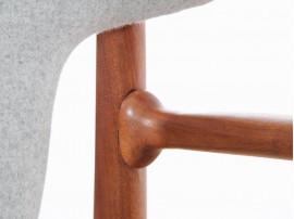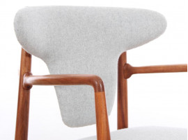 Mid-Century modern arm chair in mahogany, attributed to Kofod Larsen. Newly reupholstered with Kvadrat Divina Melange fabric.