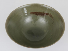 Mid-Century Modern extra large ceramic bowl, green glazure. Monogram P.L.