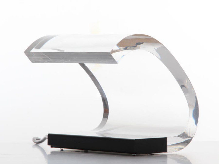 Joe Colombo, a table lamp, model Acrilica 281 for O-Luce. Joe Colombo, a table lamp, model Acrilica 281 for O-Luce. Designed in 1962, gold medal XIII Trienale. Construction made of plexiglass with stand made of metal varnished in black,the plexi body is illuminated from within the stand. Small choc and traces on steel base. Early original edition. EU plug and standard.