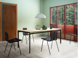 The PK52A Student Desk was designed by Poul Kjærholm for the Royal Danish Academy of Fine Arts, while he was a member of the academic staff. The cleverly constructed table highlights Kjærholm’s signature ability to unite traditional craftsmanship and industrial design. The simple shape embodies the lightness and geometric elegance that Kjærholm became renowned for – his pioneering role in designs such as the PK52A Student Desk also helped place Danish design on the world map. The PK52A is available in a larger version as the PK52 Professor Desk. Both desks can effortlessly serve as dining tables as their tabletops are reversible, making it possible to use each side for its own purpose. The tables also have an optional drawer as a beautiful storage solution. Legs in black or gray lacquered steel.