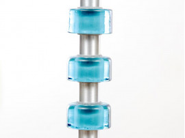 Mid-Century modern scandinavian floor lamp in aluminium and blue glass by Carl Fagerlund. Extendable leg. New electrical system brought up to EU standard. E27 bulb. New shade included.