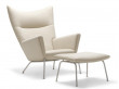 The CH446 footstool was originally designed by Hans J. Wegner in 1958 for the CH401 chair. It has a light appearance, inspite of its solid-wood interior frame, with tubular stainless steel legs that will last for generations. The footstool is an ideal match for Wegner’s CH401 lounge chair and his two iconic lounge chairs, the Wing Chair and the Oculus Chair. Price indicated for the fabric version.