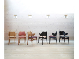 Behind the beautiful form-stressed Gesture Chair designed in the 50s is the renowned Danish architect Hans Olsen. With its welcoming design, the Gesture Chair creates a warm atmosphere around the dining table or at the desk in the living room, where a chair must also be something special. The armrests invite you to sit down in the seat and find peace in the form-fitting design and are also designed so that you can move very close to the table. Gesture Chair is a design chair with a certain heaviness, which is balanced by the light and playful radiance. As a tribute to the joy of color of the 50s, the Gesture Chair is available in several types of wood with a multitude of beautiful colors added, either with: upholstery on the back and seat, with upholstery on the seat or a completely simple wooden variant, depending on the desired expression.