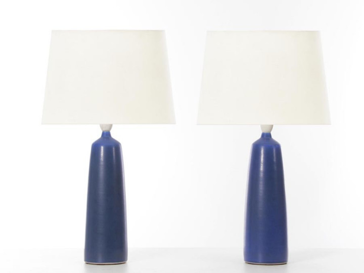 Mid-Century modern scandinavian pair of ceramic table lamps by Palshus