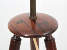 Mid century modern scandinavian pair of tripod table lamps in rio rosewood. Shades not included.
