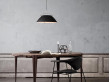 A master piece in design and craftsmanship. Hand made with the utmost care in every detail from the wet painted aluminium shade to the hanger. Cable lift + lamp = maximum length 2m. Used over a dining table this is suitable for ceiling heights up to a little more than 3m.