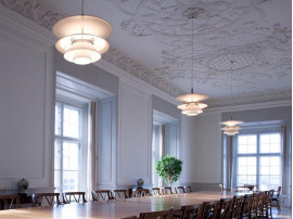 Henningsen's design principles were based on the scientific analysis of the ways in which lampshades distribute light, glare, and reflection. The PH lampshades were composed of a series of separate, interleaved elements that gently diffused the light throughout the space in which it was situated as well as directing it downwards