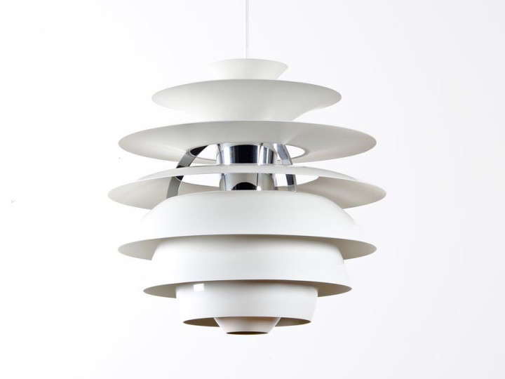 Henningsen's design principles were based on the scientific analysis of the ways in which lampshades distribute light, glare, and reflection. The PH lampshades were composed of a series of separate, interleaved elements that gently diffused the light throughout the space in which it was situated as well as directing it downwards