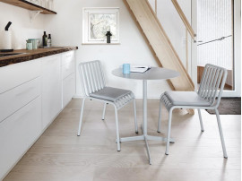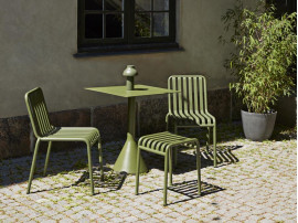 Designed by French brothers Ronan and Erwan Bouroullec, Palissade is a collection of outdoor furniture for HAY in powder coated steel. United by a common principle of symmetrical geometry, the Palissade collection is engineered to reproduce the same visual simplicity and core strength throughout. Designed in colour and form to integrate effortlessly into a natural landscape or urban setting, Palissade is intended to be used over a longer period of time and become more beautiful over the years. The chairs and benches are also available with a hot-dip galvanised finish, offering maintenance-free longevity. The collection is suited to a wide variety of environments, from cafés and restaurants to gardens, terraces and balconi