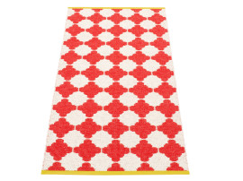 PAPPELINA plastic rugs are entirely handmade in Sweden. Each rug has been woven on traditional looms with wooden shuttles. The rugs can be used both indoors and outdoors, in bathrooms, kitchens, or hallways. The larger sizes are perfect for a terrace, living room, or under a dining table.