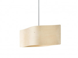 Finnish pendant model Large 78. The Finom pendant light is a statuesque light. Shade in thin birch veneer Legs in flexible oiled ash wood. The lamp holder is black. Cord in black fabric.