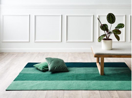 The Scandinavian PET Bluesky rug is entirely handmade in India from recycled plastic fibers, the final rendering gives an appearance very similar to that of wool. Traditional craftsmanship of artisan weavers is fully associated with the manufacturer's green project to recycle household material or the local garment industry. Size : 140 cm x 200 cm.