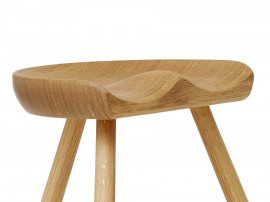 The seat is shaped out of one large solid piece of wood and because of the variations in the woodgrain, every Shoemaker Chair™ is completely unique. Together, the turned legs and the stabilizing T connection create a harmonic and aesthetic piece of furniture with strong references to the Nordic design universe.