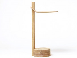 “The development of the Stilk Side Table started with the idea of creating an extremely light construction that rests on a solid monolith. Our aim is to challenge the construction of a table and make something which seems to hover in the air. Through studying bent surfaces and counterweight we figured out the mold of the tabletop.” – Herman Studio