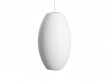 Designed by pioneering American designer George Nelson in 1947, and first produced in 1952, the Bubble Lamp signaled a revolution in the Modernist lighting industry. Available in an assortment of organic sizes and shapes, these elegant orbs were inspired by a set of silk-covered Swedish pendant lamps Nelson wanted for his office, but found to be too expensive. Employing the resourcefulness that characterized his working process, he decided to use a self-webbing plastic spray developed by the U.S. military, and applied it over a lightweight, rounded-steel frame to produce these soft, glowing fixtures. The Nelson Ball Bubble Pendant is a full, perfectly round sphere that fills any interior with a warm, diffused light. A steel ceiling plate allows it to delicately float overhead. The Danish manufacturer Hay has been reissuing them since 2019.