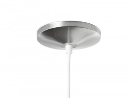 Designed by pioneering American designer George Nelson in 1947, and first produced in 1952, the Bubble Lamp signaled a revolution in the Modernist lighting industry. Available in an assortment of organic sizes and shapes, these elegant orbs were inspired by a set of silk-covered Swedish pendant lamps Nelson wanted for his office, but found to be too expensive. Employing the resourcefulness that characterized his working process, he decided to use a self-webbing plastic spray developed by the U.S. military, and applied it over a lightweight, rounded-steel frame to produce these soft, glowing fixtures. The Nelson Ball Bubble Pendant is a full, perfectly round sphere that fills any interior with a warm, diffused light. A steel ceiling plate allows it to delicately float overhead. The Danish manufacturer Hay has been reissuing them since 2019.