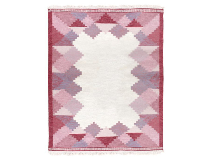 Swedish Rolakan carpet hand woven wool. geometric patterns. 280 x 200 cm. Vintage unique piece.