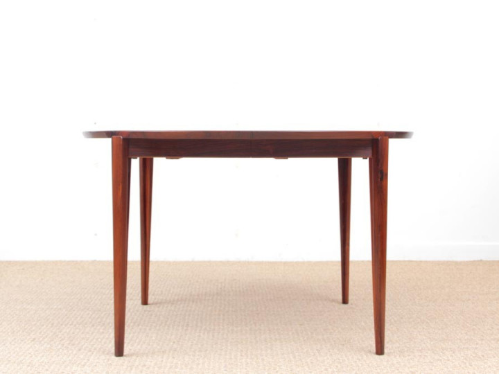 Mid-Century Modern dining table by Harry Rosengren Hansen for brande Møbelindustri in Rio rosewood. 2 extending leaves.