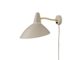 Applique murale avec un abat-jour large élégant et emblématique du maître d'éclairage danois des années 50, Svend Aage Holm-Sørensen. Un ajout sophistiqué au mur du salon ainsi qu'à la chambre, où il créera une atmosphère en tant que lampe de chevet. L'applique murale Lightsome est généreuse en lumière grâce à son grand abat-jour sculptural en métal laqué avec de fins trous de lumière au sommet comme élément de design supplémentaire de la main de Holm-Sørensen. Avec son langage de conception doux et ses magnifiques détails en laiton, Lightsome est une applique murale intemporelle de la plus haute qualité.