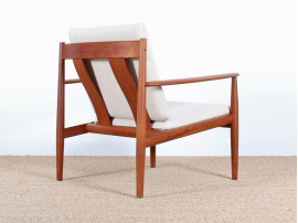 Ensemble constitué d'une banquette 3 places et de deux fauteuils de Grete Jalk. Structure en teck massif. Mousses refaites à neuf. Sangles de la banquettes refaites à neuf.