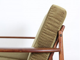 Banquette scandinave 2 places en teck. Coussins d'origine. Possibilité de refaire des coussins avec le tissu de votre choix parmis la gamme Gabriel Step Melange. Autre tissus avec supplement. Nous consulter.
