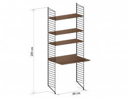 Bureau-bibliothèque String. Nouvelle édition. Ensemble constitué de 2 montants de 200 cm, 1 plateau bureau, 3 étagères.