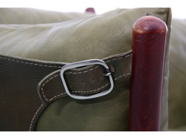 Canapé scandinave 2 places modèle Ilona. Conçu par Arne Norell en 1971 Ilona s'inspire des meubles de safari et est à la fois facile à monter et à démonter. Le cadre en bois est maintenu par les sangles en cuir sans colle ni vis. Modèle des années 80 en parfaite condition.
