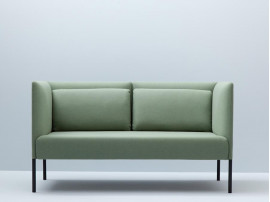 Canapé scandinave modèle Molto. 2 places Dossier bas. Molto est un système de canapés qui offre de nombreuses options et solutions créatives. Avec la version haute, Molto se transforme en un véritable havre de paix dans un environnement bruyant. Molto est disponible en un, deux et trois places, avec ou sans dossier haut. Il existe aussi en système modulable et permet de construire son espace comme on le souhaite à partir du module de base. Assise fixée. Les housses des coussins du dossier peuvent être retirées. Les pieds sont en métal laqué noir.