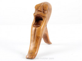 Le casse-noix a été conçu en 1932 et a été produit seulement une dizaine d'années. Fait en hêtre massif sculpté à la main dans deux pièces de bois assemblées par un axe en laiton.