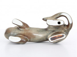 Céramique scandinave. Furet de Gunnar Nylund pour Rorstrand. Glaçure fourrure de lièvre. Signée.