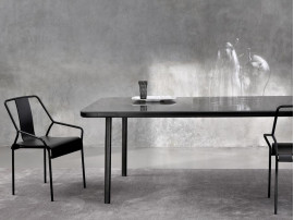 Chaise Dao. Chaise empilable. Structure en métal laqué noir ou blanc, assise et dossier en placage de chêne reconstitué naturel ou laqué noir sur multiplis.