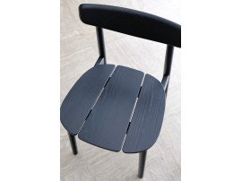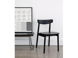 Proposée en frêne verni teinte chêne naturel ou en frêne massif teinté noir, cette assise conjugue rigueur des lignes et douceur des courbes. Chaque détail reflète le savoir-faire artisanal et le sens du matériau propre au designer allemand.