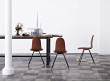 Plusieurs finitions sont disponibles sur demande : hêtre, chêne clair, noyer, chêne foncé, ou teinté blanc, noir, revêtement cuir, piètement noir, chrome ou blanc.