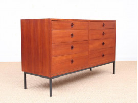 Commode double scandinave en teck de Borge Mogensen pour Karl Andersson & Söner. 8 tiroirs. Piètement en acier ciré ajouté ultérieurement.
