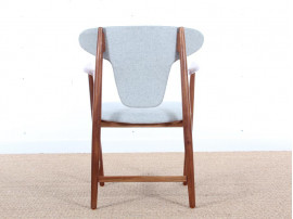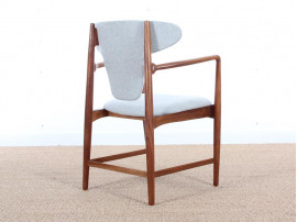 Fauteuil scandinave en acajou, atribué à Kofod Larsen. Revêtement refait à neuf en tissu Kvadrat Divina Melange.